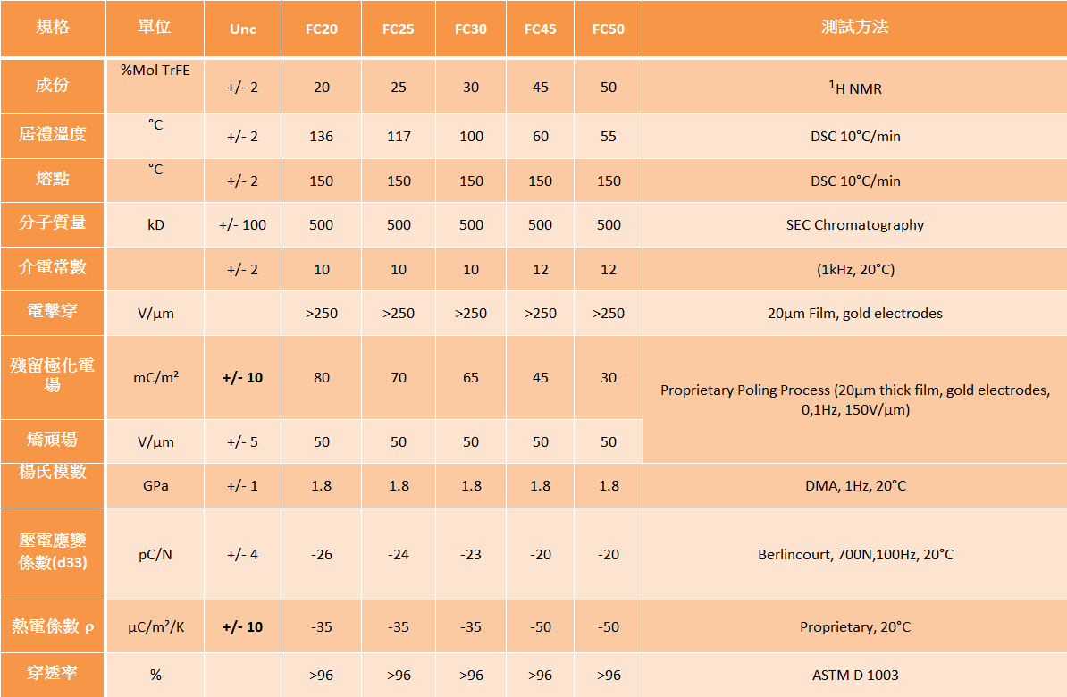● Piezotech® FC (二氟乙烯及三氟乙烯共聚物)