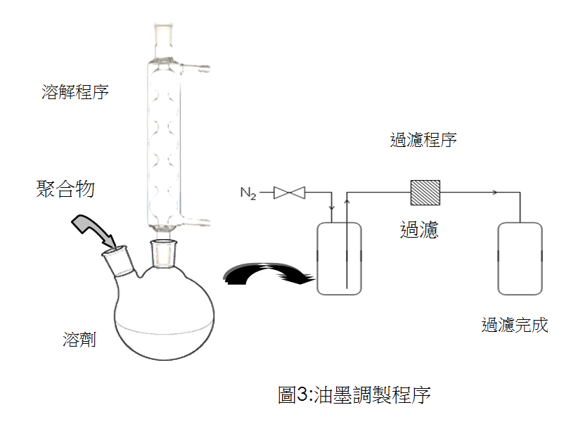 共聚物可溶于不同的溶劑當(dāng)中,如附件2,因此可利用調(diào)節(jié)溶劑中聚合物濃度的方式,獲得不同印刷制程所需對應(yīng)的適當(dāng)黏稠度。經(jīng)由加熱程序,將聚合物逐漸加入溶劑中即可取得油墨。然而,為了制得具有高電擊穿性(絕緣破壞性)的均勻薄膜,會透過過濾筒或過濾注射等標(biāo)準(zhǔn)商業(yè)過濾方法去除雜質(zhì),以防止凝膠顆粒的形成,理想的過濾精度為1微米以內(nèi)。