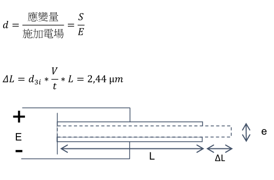 由施加電場引起的變形可由簡單的公式來定義:
